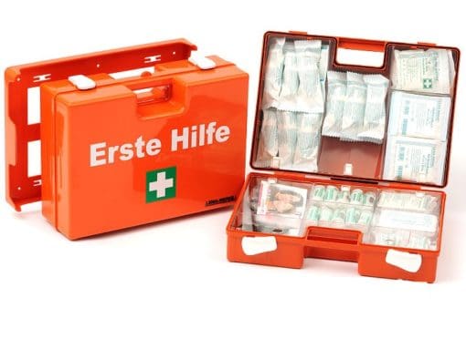 Das hochwertige Sanitätsmaterial ermöglicht Ihnen die Erstversorgung verletzter Personen im Arbeitsalltag: unter anderem können verschiedene Wunden mit Verbänden versorgt werden, Schwellungen können gekühlt werden und Blutungen gestoppt. Die Ausstattung mit Erste-Hilfe-Material nach DIN 13157 ist nach den Arbeitsstättenrichtlinien der Berufsgenossenschaft für kleinere Baustellen (bis 10 Personen), Herstellungs- und Verarbeitungsbetriebe bis 20 Personen, sowie Handels- und Verwaltungsbetriebe bis zu 50 Personen vorgeschrieben.